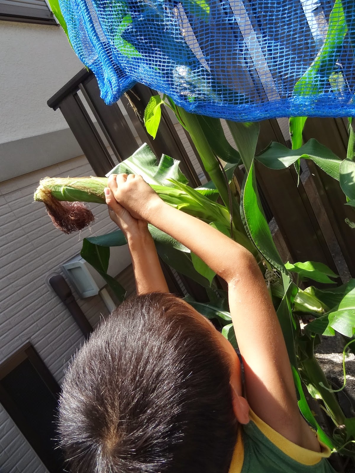 先週、ヤングコーンの状態で間引いたトウモロコシは、もう大きくなっていました。