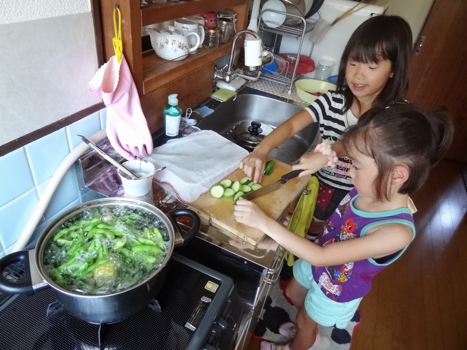 枝豆は「ビール専用」と書いてあったのだけれど、子どもたちも大好きなので、プックリした豆だけ取ってもらいました。