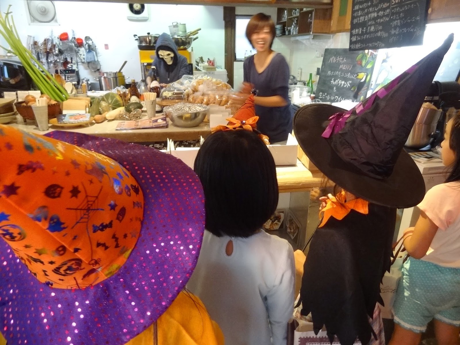 コミュニティカフェ『ココカラ』では、シモチューこと下中さんが、対応してくださいました。可愛い娘さんなのにこの仮装・・・そこがシモチューの良いト・コ・ロ!