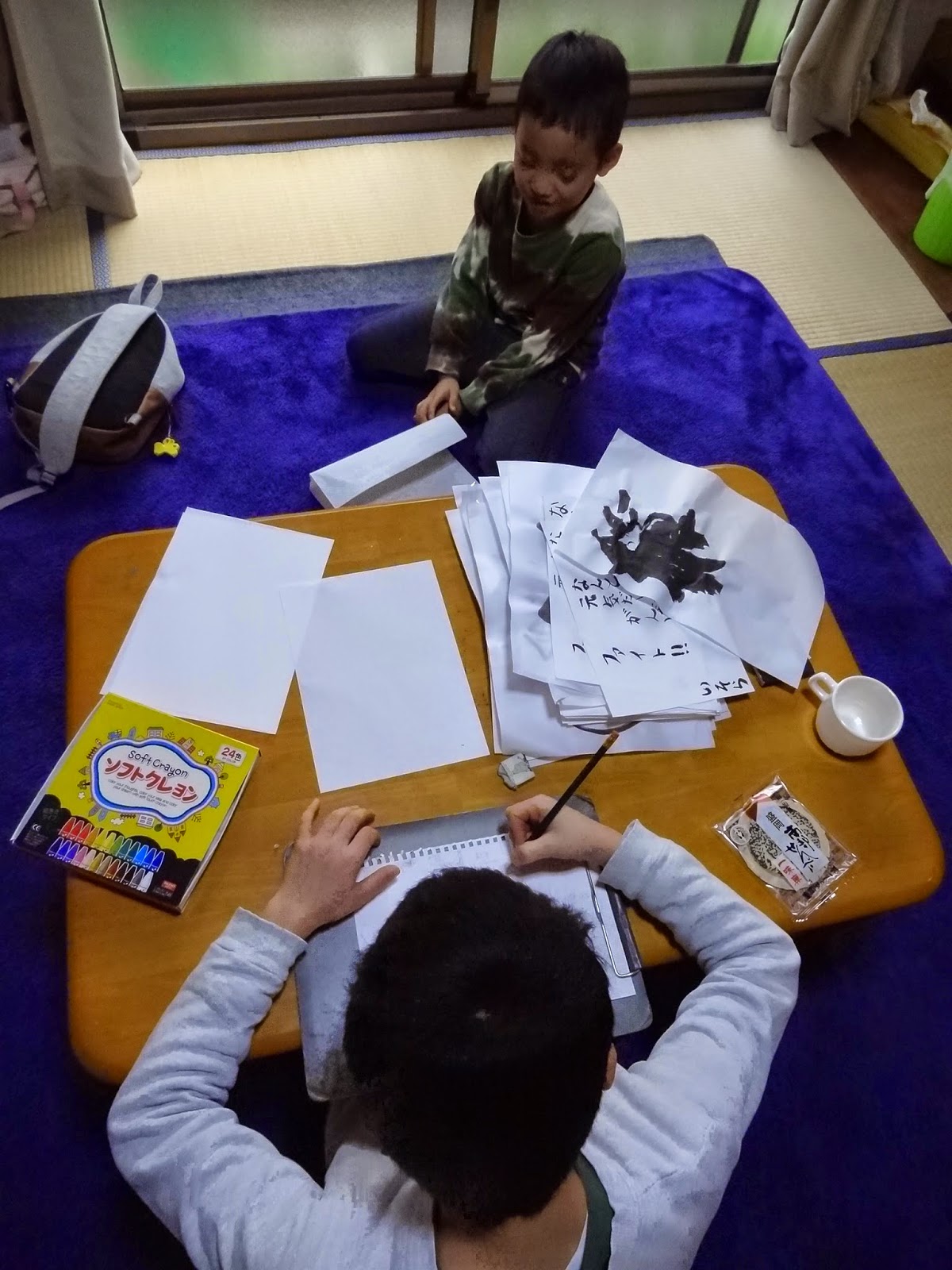 墨をすって、半紙に向かうと、おのずと気持ちもシャンとしますね。