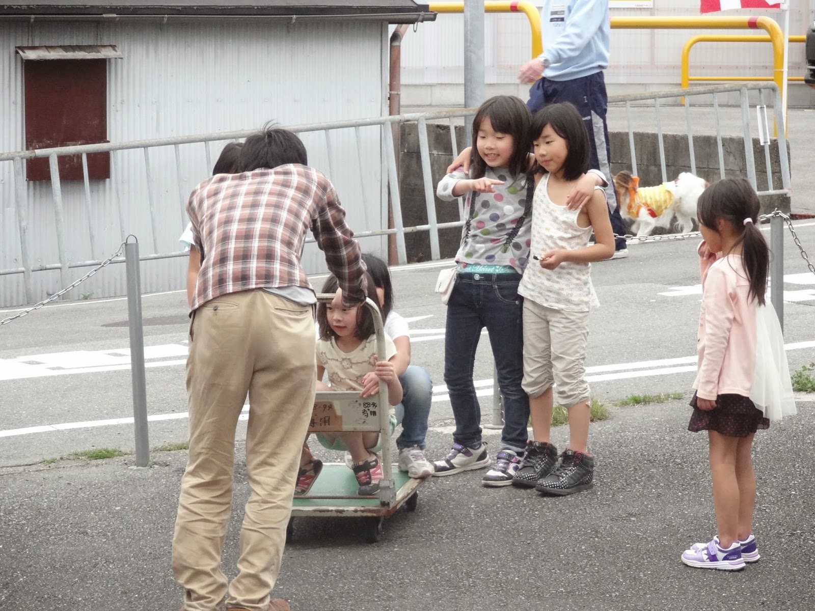 家の前の私道でひとしきり大縄跳びをやって、いつもの台車遊び。