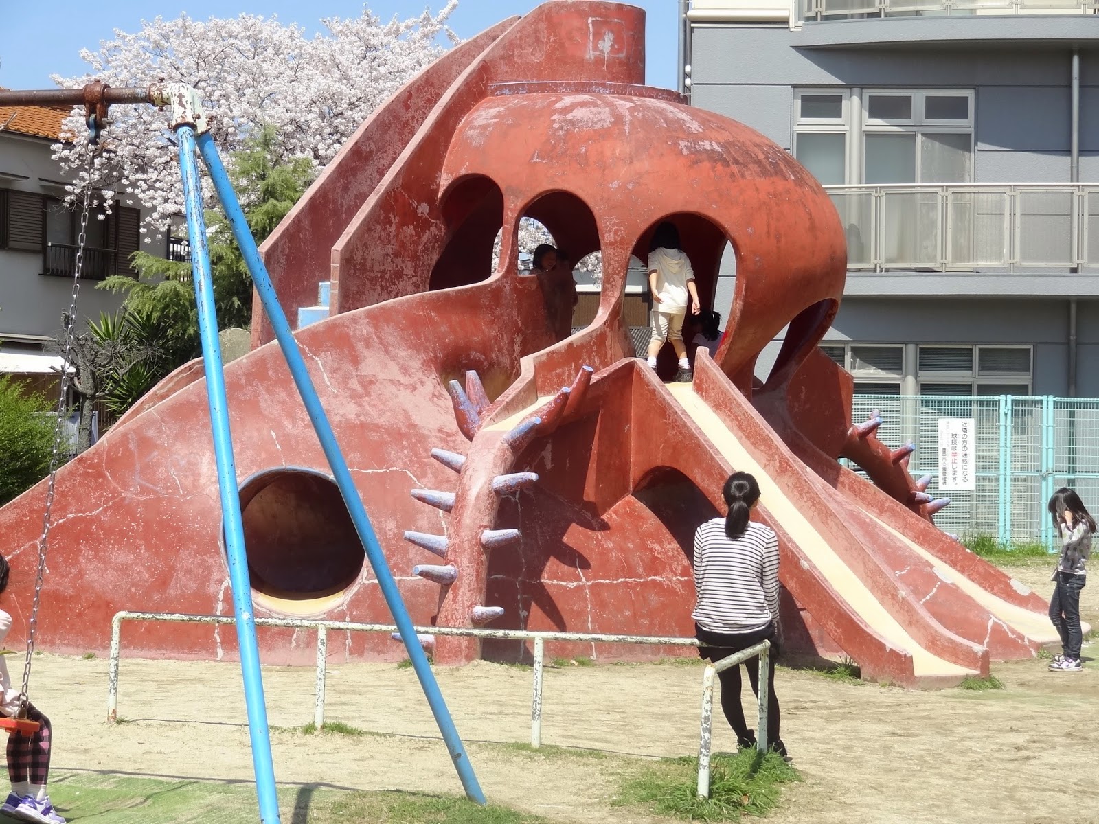 歩いて数分のタコ公園へ。