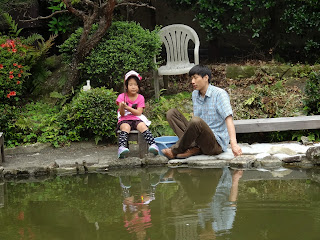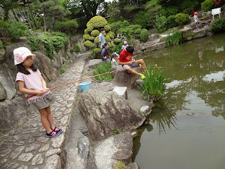 民家の庭園に作られた池(にしては広すぎですが)で、釣り道具など全て貸してもらって、1時間500円。