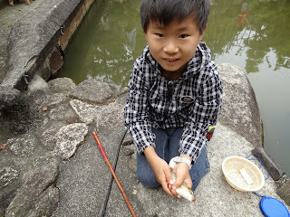 人生初の釣り体験で、魚ゲットできてよかったね~。