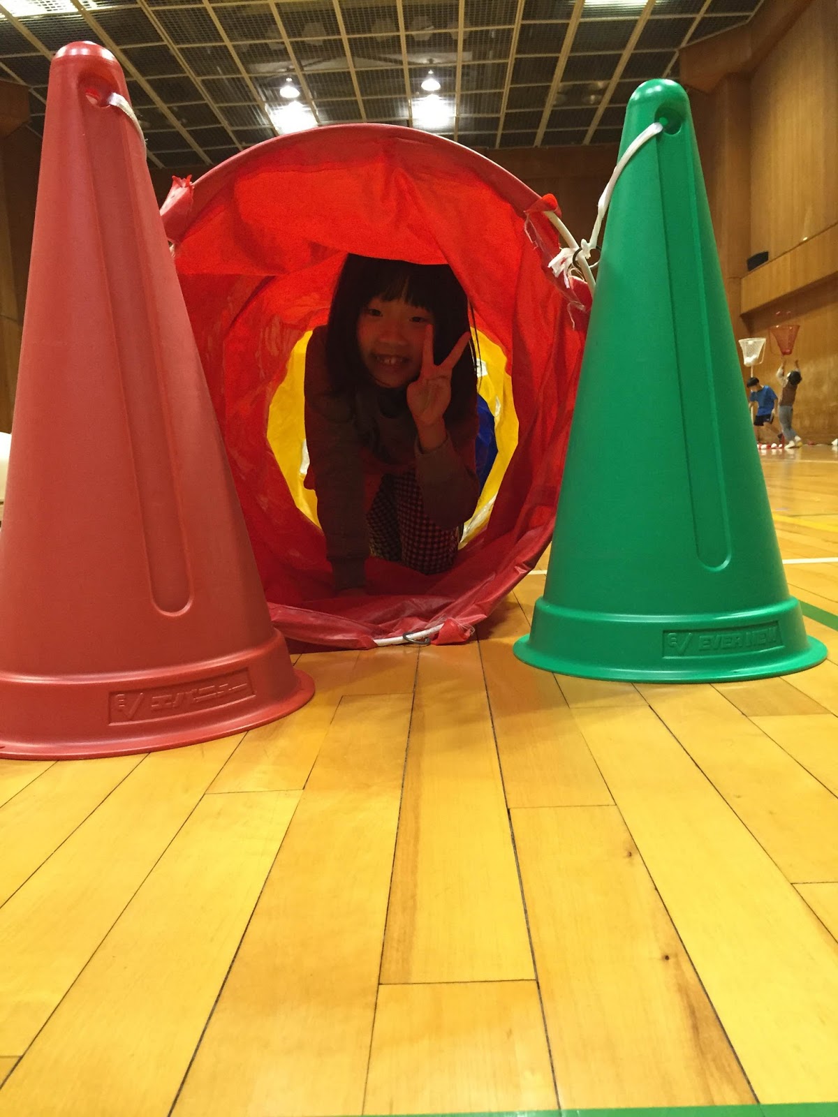 この日は一日中、ずっと小雨が降っていたので、公園や家の前でも遊べず、こうして近くの体育館で身体を思い切り動かして過ごすことができ、本当にありがたかったです。