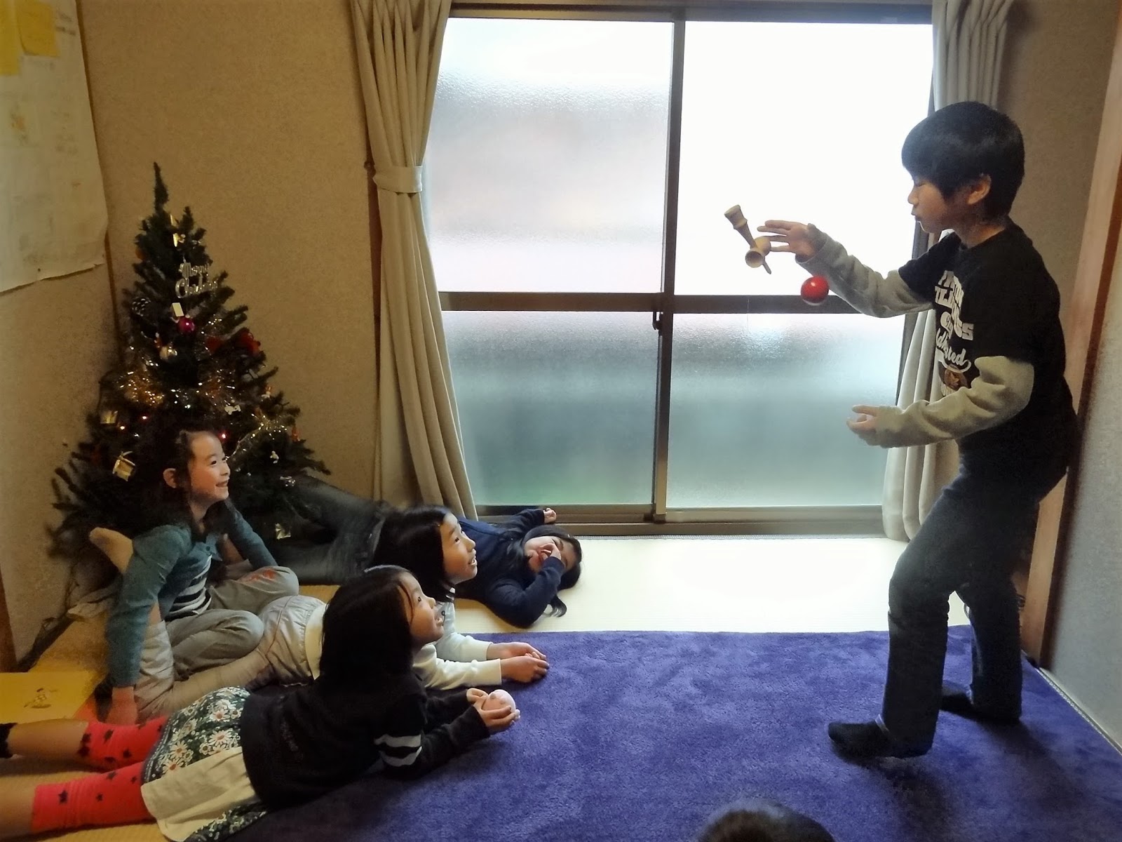 午前中は宿題、掃除をして、部屋の飾り付けやクリスマスツリーの工作。