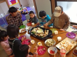 3歳~20代までが8人もいると、食事ひとつとってもホントに大変です。準備してみんなに目を配りながらサーブして、狭い台所の流しはぐっちゃぐちゃ・・・後片付けしたと思ったらおやつの準備です。