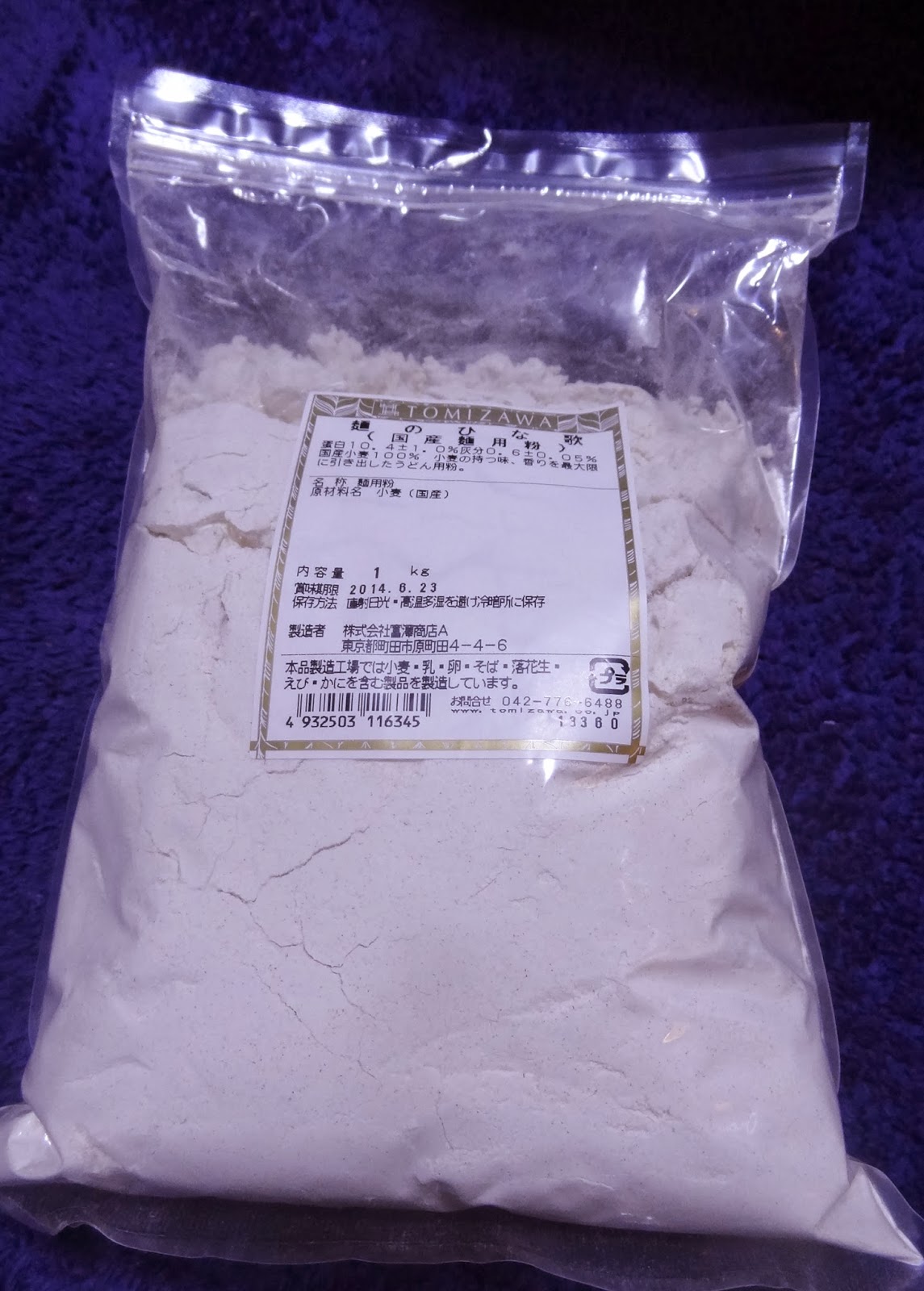 我らが用務員お兄さんのナカムラさんが差し入れしてくれた、国産小麦100%の麺用粉です。