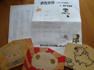 こちらでは、お寺でご用意くださったハガキに、お父さん・お母さんへの感謝の気持ち、今日の感想などを書きました(数日後、保護者の元に届いたようで、とても喜んでくださいました)。