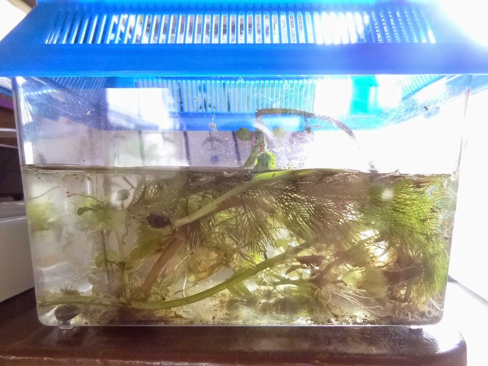 水草を取ると、もれなくエビもついてきて、大小数え切れないくらいいます。その他にも小さな生き物が、たーくさん!まぁ、そのうち自然淘汰されるのでしょうけれど。